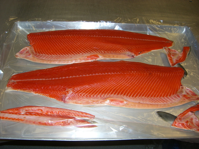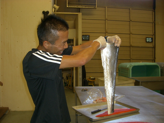 ダウンタウンにあるサーモン・ビレッジというお店にも出荷している工場らしい。Jさん、さすが。ランナーウェアで、さばく姿、皮をきれにとる姿、とってもかっこよかった!なかなかできるもんでもないよね〜。あ〜、楽しみ!
