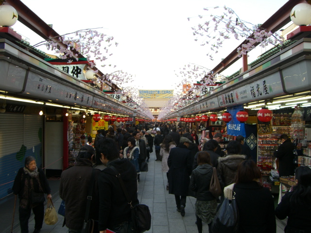 やっぱり仲見世だよね。いや〜、かなり和風なものが多くて、終わりまで行くのが大変。まあ、初めてだもんね。だけど、Wにあんまり入り口だけの方で買わない方がいいよって言っておいた。場合にもよるけど、お店によって同じ物でも値段が違う。入り口だときっと飛びつくからちょっと高くても売れる気がする。やはり平日のせいか人がすっごく多くもなかったかな。あっ、ここでもちろん焼きたての人形焼き食べる。マラソンの日のリベンジ。