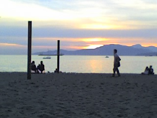 この間の調子から考えても11キロで終わりにした。その後夕方はある程度気温も下がったけど、キツラノビーチは人でいっぱい。普段見かけない人だけど、一体どこから湧いて来たの?って感じ。携帯でパシャリ。なんと言っても可愛かったのは、ぶらんこで優雅に遊んでいる子供たち。だけど、よく考えるともう夕方8時も回っている?日本だったらちょっとこんな時間に遊んでいるの考えられないよね。