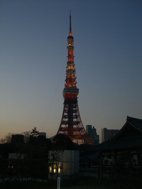 さてさて、気分すっごい悪い中、やはり観光名所、東京タワーへ。彼曰く、ライトも点いてちょうどいい時間に来たんじゃ〜ないって。はいはい、確かに夜景はきれいでしたね。