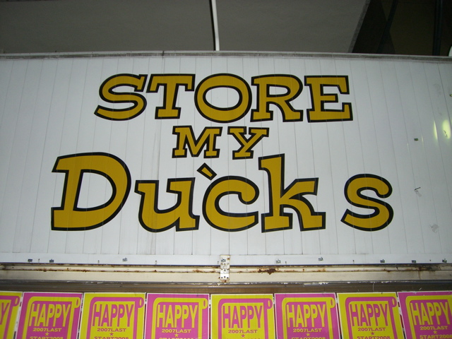 本当は早目に出かけたなら、原宿散策と思っていましたが・・・もう9時も回って、竹下通りはしんみり。だけど、少しだけ原宿ガールのファッションが見れてWはよかったようです。これは、お店の看板。日本だったら別に考えないけど・・・英語で考えると結構おかしな看板っていっぱいあるよね。「ダックのお店」なんだろうけど、これだけ見ると、「自分のあひるを貯める、集める?」って感じになって何?って感じよね。いやいや、これはまだいいけど、すっごい看板とか結構みるよね。