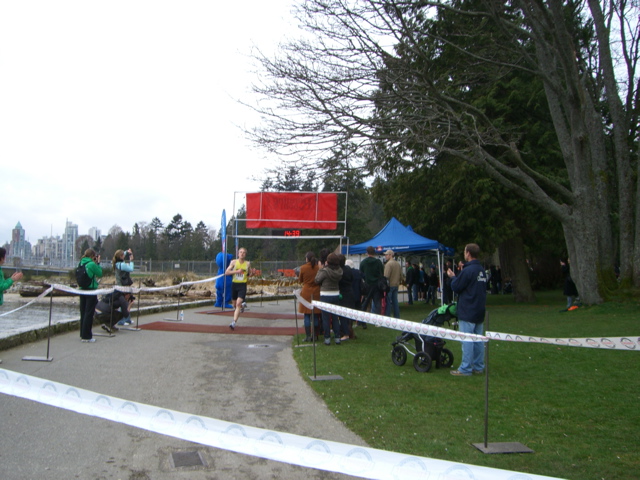 見た目はなんちゃんて〜ランなのですが、エリートランナーもいるんですよ。今年の優勝者の写真です。14分39秒。ローカルなイベントにしてはめちゃ速。この日は最初はレジストレーションのお手伝い、そして、ランナーのチップを取る係でした。なので、一番最初のランナーしか取れませんでした。チップは足に巻くマジックテープタイプで、5キロはやはり短いので、結構なスピードで走るため、自分で取るのが困難なランナーが多かったです。走り終わった後は、呼吸をさせてくれっていうランナーが多いんですが、そうすると忘れたまま、行ってしまうだろうということで、容赦なく取って行きました。お陰で足下ばかり見ていたせいか、会う人には会いましたが、友人は見逃してしまいました。しかも、手が結構冷たかったため、取るのにも手間取ったし・・・ しかも、前のレースはどうだったって聞いてくれる人がいたんですが、ちょっとだけ答えて・・・悪いんだけど、答えている暇がないんだよ〜