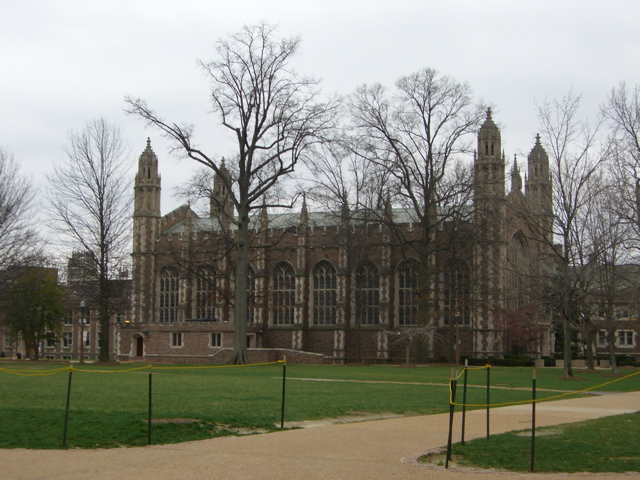 走りながら、キャンパスを撮ってみる。レンガ作り。前日の陽気に比べ、今日は寒くなって、曇り。。。