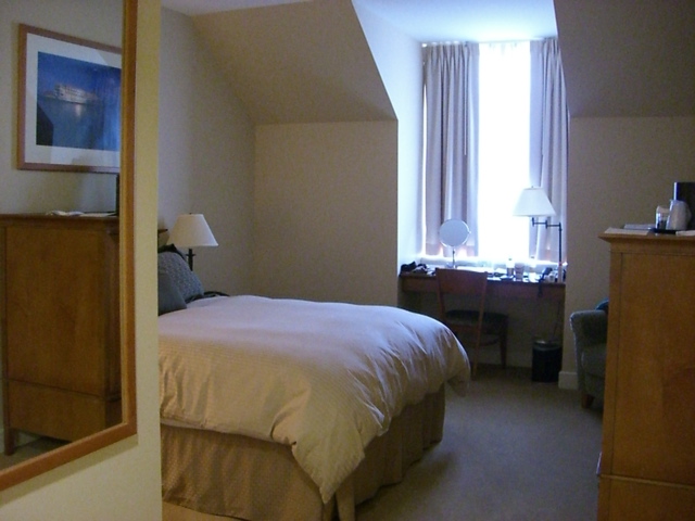 ここの教授が迎えに来てくれて、学校にあるというホテルに行くと、うわ〜、すごい。かなり広くて、きれい。昨日、今日ととっても至れり尽くせりで、しかもすべて今日も予め設定されたスケジュールが決まっていた。他の学生にも会えたし、だいぶ感触はつかめた。実際大学院自体は小さいが、比較文学と繋がっていて、しかもエクストラにコースをとれば、ジェンダーなどの資格や翻訳理論の資格なども取れるので、この点はかなり魅力的。しかも、やはり授業料を払わず、決まった奨学金がもらえるので、ある程度の生活費ももらえ、働く心配をとりあえずしなくてもいい。2年時から日本語アシスタントをするとしても、準備期間を含めても週10時間。勉強に集中できるし、学会や研究の旅行に行く基金を出してくれる資金がありそう。しかも、色んな所とコネがありそう。これはやはり何年も行くのであればかなり大事だと思う。で、気が付いたことにここは私学だった。やはりお金がありそう。