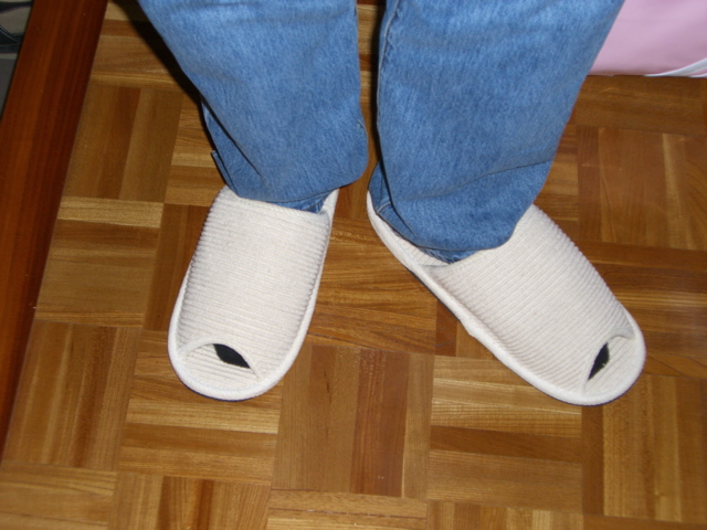 そう、ここで二人が用意してくれていたW用スリッパー!日本最大スリッパらしい!!こうやって見るとあんまり大きく見えないかな?今度私のもらったスリッパと比較しよう!いや〜、身長の割にはあんまり足は大きくない方なのかな?12〜13インチ(30.5~33センチ)って、日本人にとってはかなり大きいよね。いや〜、二人がこうやって想像して探してくれたことを考えるとかなり笑えるけど、有り難い。