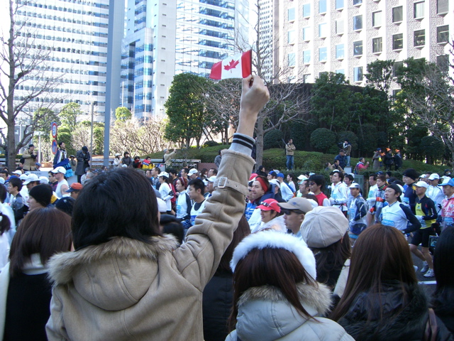 人が多かったのと、ゴール周辺の規制がいっぱいあったようだ。応援される方も人・人・人で大変だったよう。