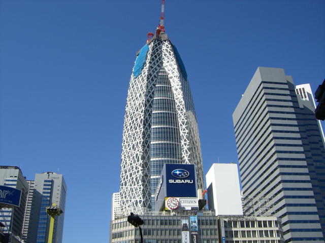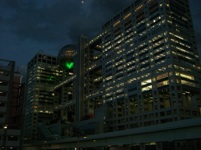 目的を多少満たし、外へ出ると夕方になり、なかなかいい感じ。東京タワーにもライトがついた。それに、確かにフジテレビはスペースチックだ。