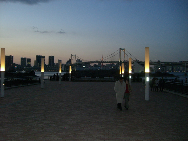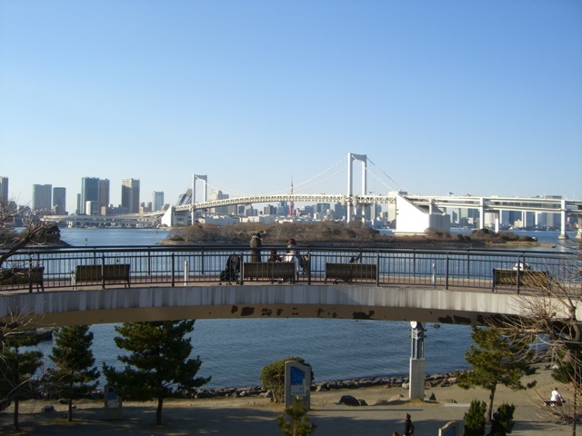 (これって縁起がいいのか悪いのか分からない)仕方がないので、お手伝いをし、結び目を優しく結んでもらった。ここの神様はお猿さん。おさるさんのお像がいっぱい。そして、彼は絵馬に願い事を書いてみたかったらしくて、自分のお気に入りの絵馬を選び、お願いごとを書いてつり下げる。これは大丈夫だったみたい。日本人にはすっごいフツーのことだけど、やったことのない人にとっては珍しいよね。で、Wが気になったのは、こういった神社に真っ赤なコカコーラのベンチがあったのが、不思議だったみたい。意外と近代的な神社だったから、私はあんまり何も考えず。さて、苦痛な階段を降り、いざ出陣!えっ、ドコに行くかって?ビックサイトにも近かったお台場へ。とってもいい天気。もちろん観光?も何だけど、なんと言ってもお台場には「トイザラス」