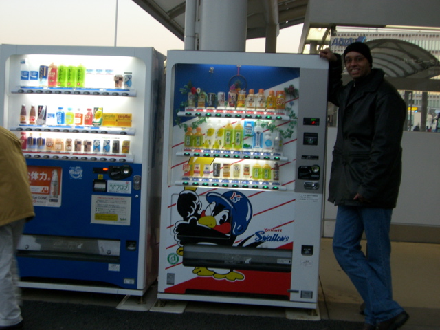 )そろそろ、Wは日本に来たという実感が湧いて来たのか、疲れもふっとんだよう。また風が吹いてさむ〜。彼は、8歳からずっと行きたかったから、念願。成田空港の駐車場で自動販売機を見つけ、思わず感激