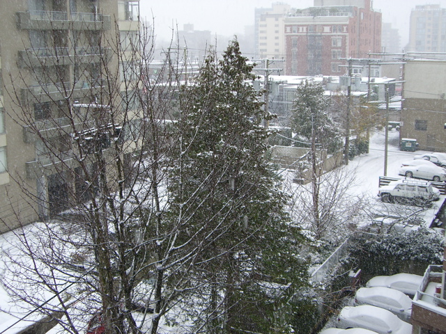 土曜日から雪が降り始め、日曜日はご覧の通り、雪景色。今週はいろいろしていて、3日間走れなかったので、日曜日は走ろうと思い、雪の中走って来た。予定では23キロだったが、この天気でこれは無謀だと思い、短い距離に。思ったより、楽しい。足下は滑らないように、そしてひねらないように気を付け、車の運転と同じで、ゆっくり走るしかない。だけど、普段走るより、もっと運動になる。スノーシューで走るのってこんな感じかなと思う。(実はバンクーバーに11年以上いながら、まだ試したことない。)そう、走っていたら、本当に通りにスノーシュー履いている人がいた。