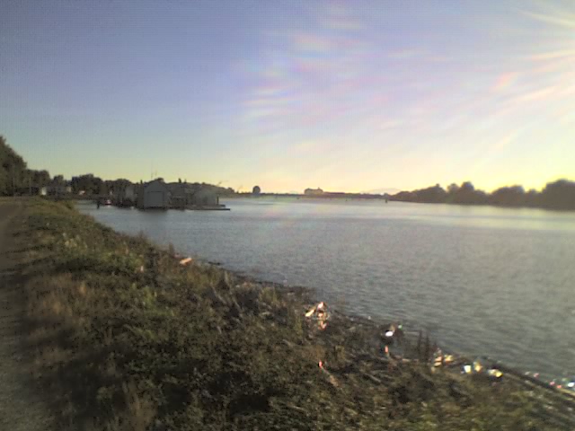 ここまでで18〜19キロぐらい。セントラルパークを通り抜け、メトロタウンへ・・・話をしていたら、うっかり通り過ぎてしましたが(買い物行きたい)・・・ あと8〜9キロ・・・バーナービーを通り過ぎたら、ようやくニューウェストミニスター市へ。フレイザーリバーという川が見えてきました。後は、下り坂!だけど、ちょっと昔の怪我、左膝の外側がちょっぴり固くなってきたし、足が疲れて来たよ。もう少し。そして、川沿いが見えて来た・・・ニューウェストミニスターのダウンタウン?へ。もう足が疲れているね・・・ キーというマーケットに着いたらおしまい(写真