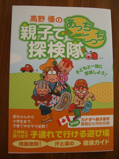 わくわく!なので、皆さんにもブログで本を紹介しま〜す。お母さん方々には、かなりおなじみのベストセラーの漫画家&エッセイストの高野優さん。妊娠から育児にかけて面白おかしく、またウィットの入ったマンガ&エッセイを描き大人気!!私の友人のママたちは「うん、うん」ってうなずいてますよねぇ。えっ、何で出版社から本が来るの?って疑問に思っている人もいるのでは?はい、実は語学学校で働いていた時に、カナダ親子留学の取材で高野優さんがいらしたんですね。三人の娘さんたちと一緒に。学校、デイケア、アクテビティ、ホームステイなどいろいろお世話させてもらったんですが、私のとてもよい経験になったし、楽しかったですね。お子さんは本当に元気でみんなそれぞれ個性があって、しかもお互い助け合ったりしているのを見てすごいなあと思いました。ベテランママはさすが
