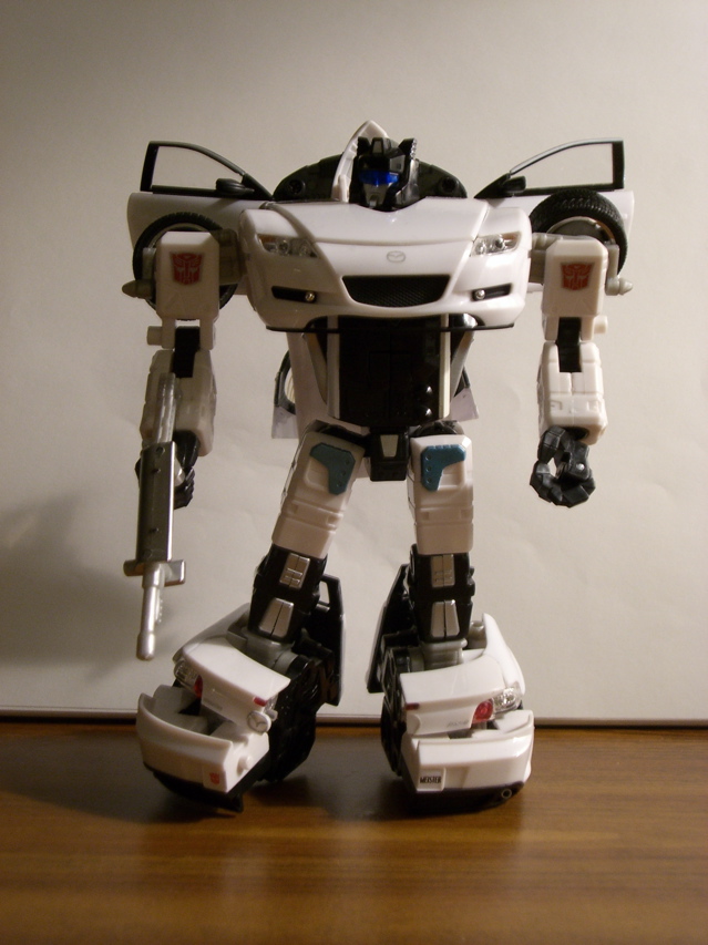 きっと分かった人には分かりましたね。はい、実はおもちゃでございます。しかし、これがよく出来ているんですよ。本当の車のデザインを使ったらしいんですが、ちゃんと車輪も動くし、ドアも前後、トランク、そしてボンネットも開きます。座席やハンドルも動かせるという優れもの。細かいですねえ。それだけで、驚いてはいけません。皆さん、トランスフォーマーというアニメをご存知ですか?実はこの車はこのシリーズなんです。この形からロボットに変身するんですねえ。ここから、どうやってロボットに変身させるかは私の仕事ではありません。彼の仕事でございます。結構複雑そうです。変身が出来上がったら。。。それは、またのお楽しみに。