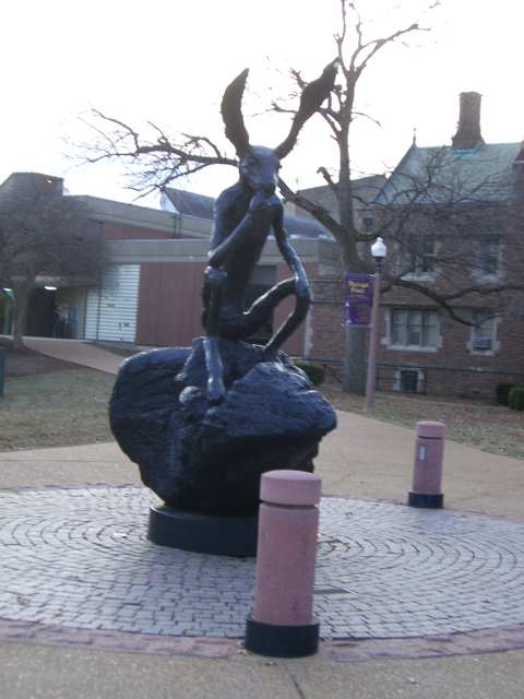 追伸:今日は自転車でキャンパスに行くとかなり静か。ブックスストアの近くにある「考えるうさぎ」の銅像。何でかな〜と思うなぞの代物。しかも、ちょっとunsettling... creepy(心地悪い、気持ち悪い)って感じじゃない?